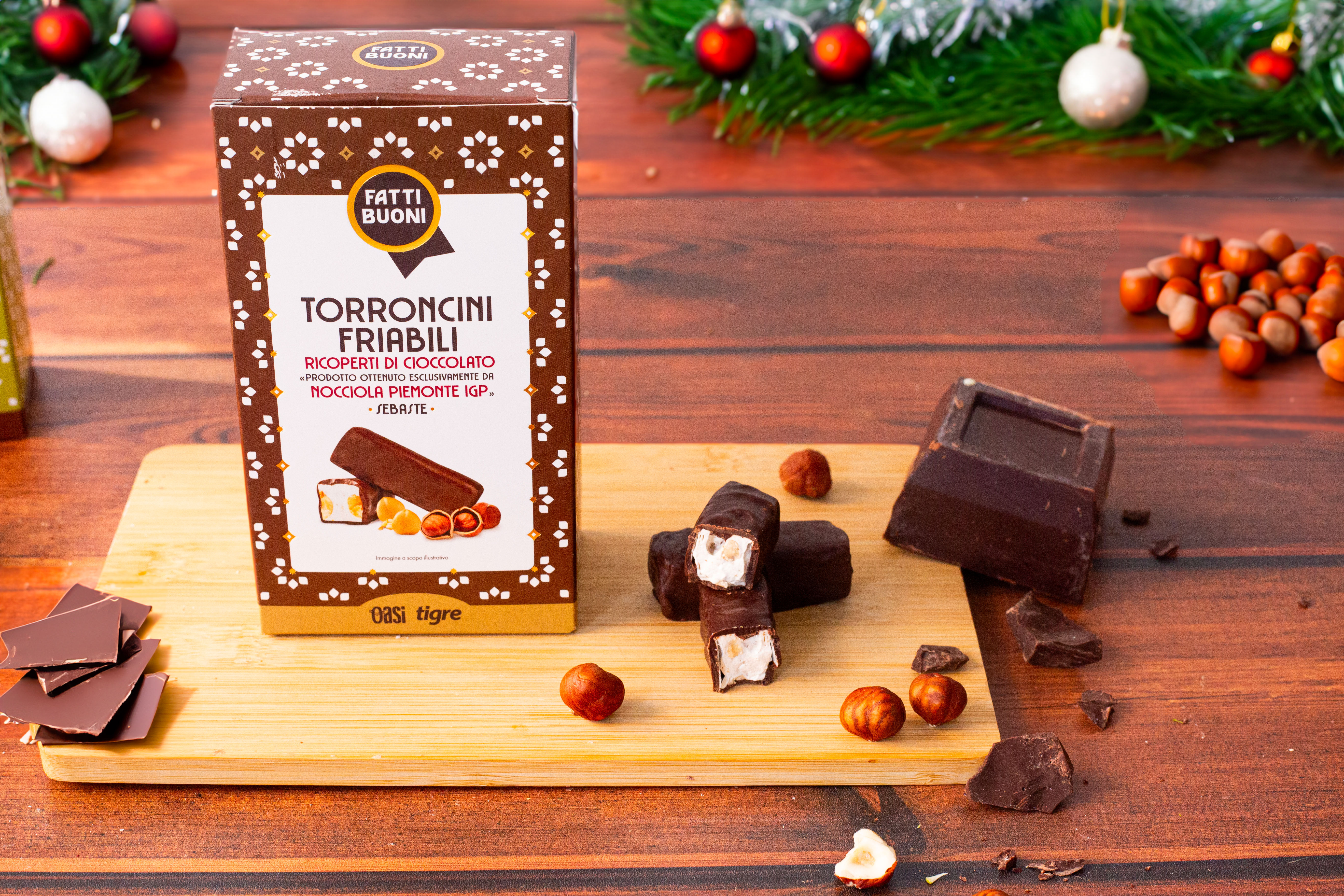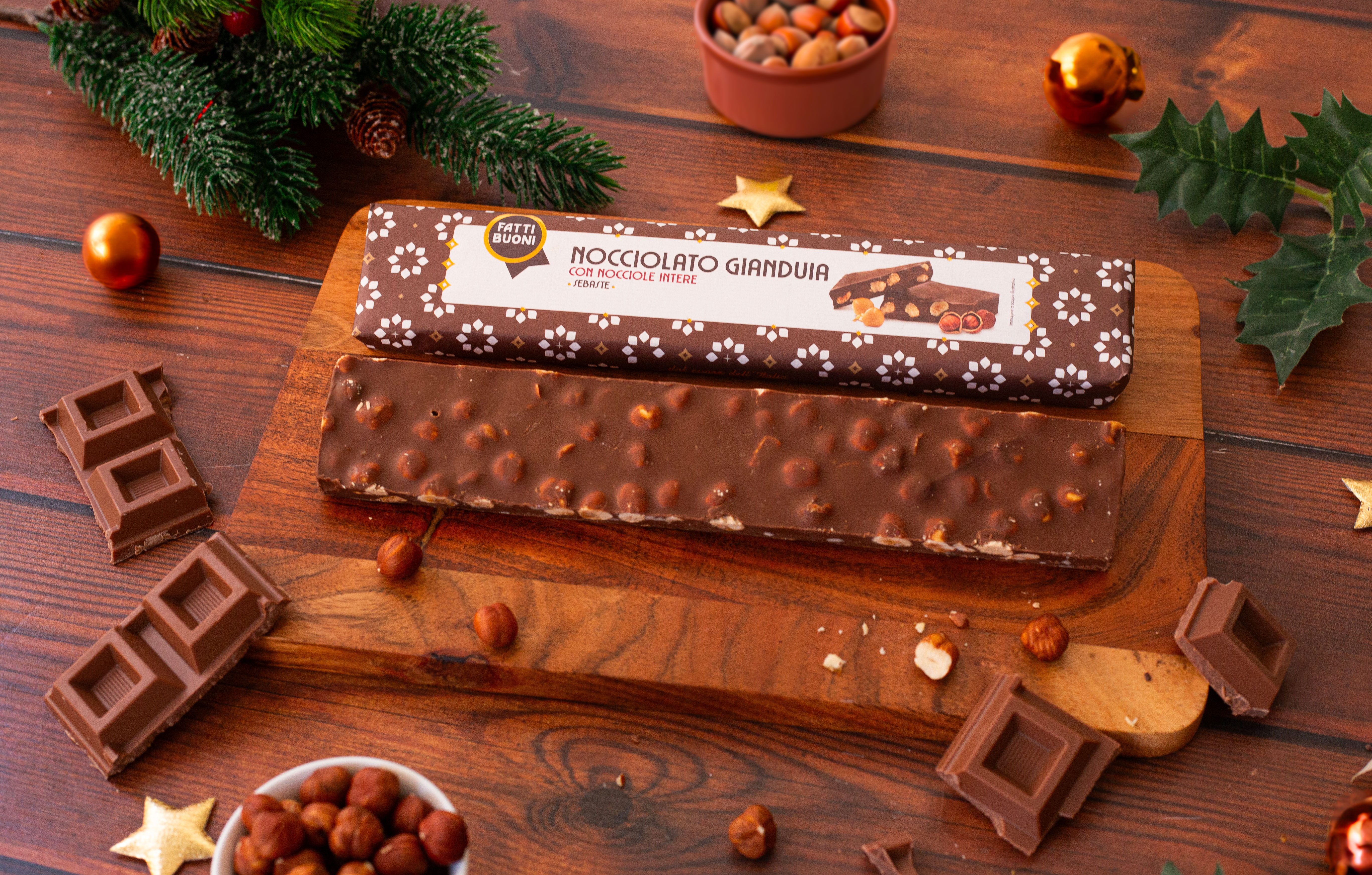 CON NOCCIOLE INTERE. Una ricetta di famiglia tramandata da 5 generazioni è quella che dà vita a questo prodotto goloso, immancabile sulle tavole natalizie! Le migliori nocciole italiane accuratamente selezionate e tostate in azienda e cioccolato di qualità superiore.